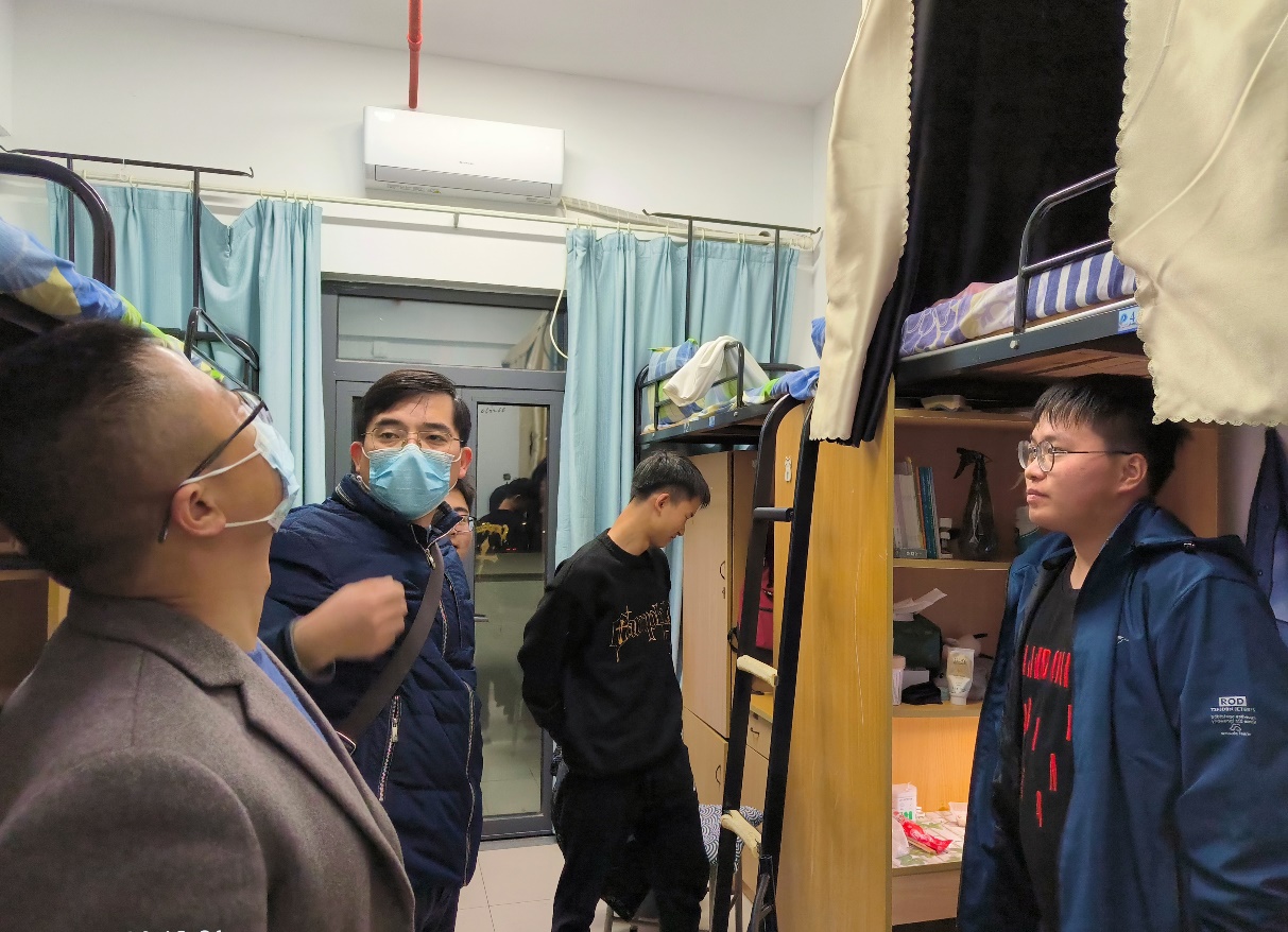 為切實(shí)做好疫情防控新形勢下的學(xué)生管理工作,及時(shí)了解學(xué)生的思想動(dòng)態(tài)、心理狀況、宿舍安全衛(wèi)生以及期末備考復(fù)習(xí)情況,確保學(xué)生在校生活、學(xué)習(xí)和日常管理工作有序、平穩(wěn)開展。11月29日、12月5日連續(xù)多日,機(jī)械工程學(xué)院黨委書記翟純純、副院長張建、鐘偉與各專業(yè)輔導(dǎo)員老師深入學(xué)生宿舍,傾聽學(xué)生訴求,了解近期學(xué)生思想動(dòng)態(tài)和實(shí)際困難,與部分學(xué)生進(jìn)行了深入交流。